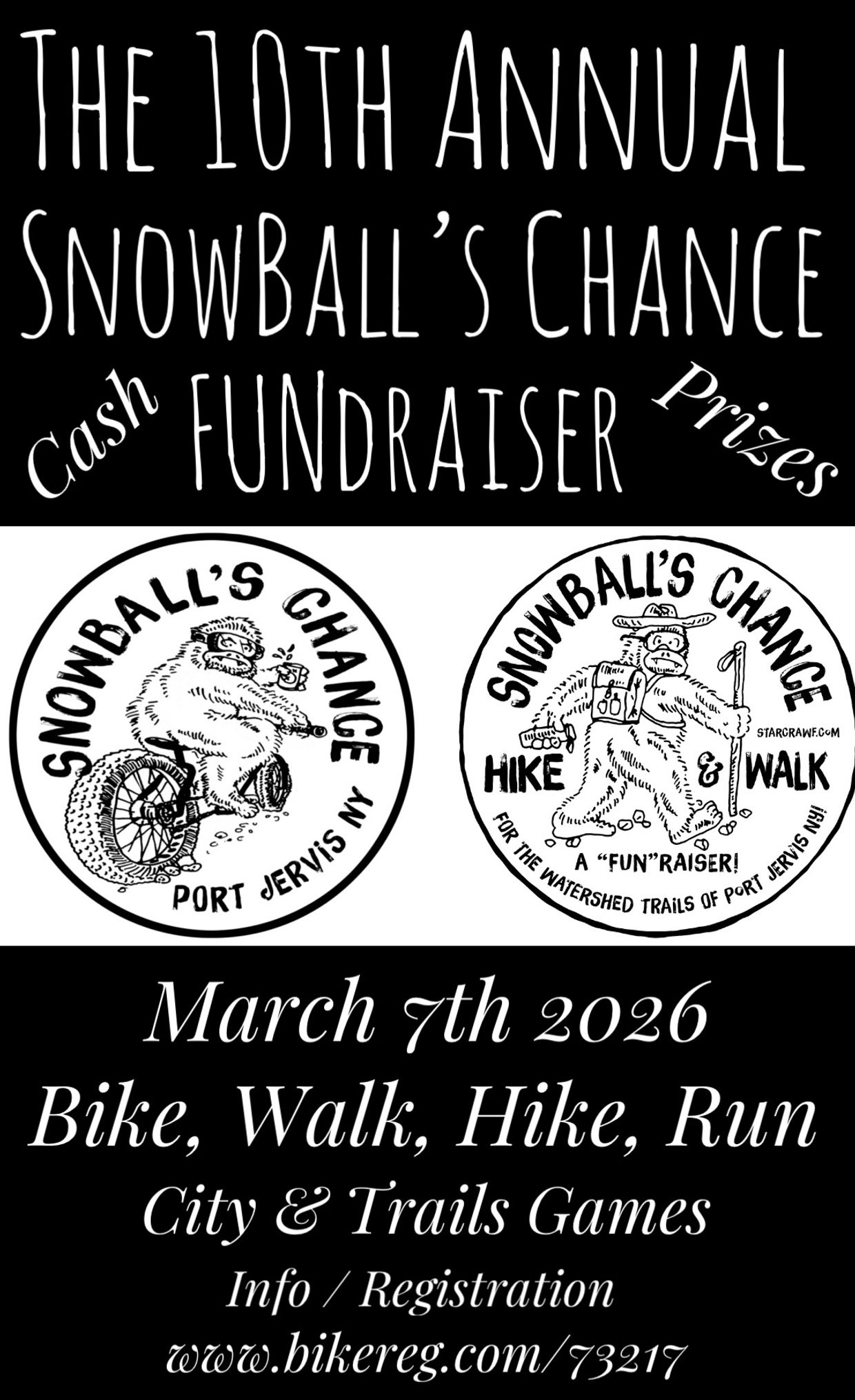 Enjoy the Experience Snowball's Chance! This is a benefit for the WaterShed Trails of Port Jervis and the Outdoor Club of Port Jervis.